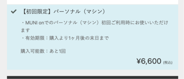 ・MUNI onでのパーソナル(マシン)初回ご利用時にお使いいただけます